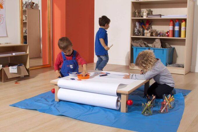 Das Podest ist durch seine robuste Konstruktion aus Buche Massivholz und HPL Schichtstoff besonders langlebig und stabil. Die seitliche Papierrolle ermöglicht es den Kindern, stets griffbereites Material zur Verfügung zu haben, was die kreativen Prozesse erleichtert. Bitte bestellen Sie die passende Papierrolle (512 499) separat.