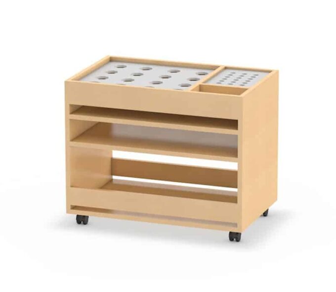 Unser Malwagen MW 3 ist die perfekte Lösung für Kindergärten, Schulen und pädagogische Einrichtungen, die eine mobile und organisierte Aufbewahrung für ihre Malutensilien benötigen. Mit seinen durchdachten Ablageflächen und praktischen Halterungen sorgt dieser Wagen dafür, dass alles übersichtlich verstaut und griffbereit ist.