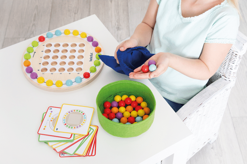 Mit 87 Teilen, darunter ein robustes Holzspielbrett und 64 bunte Holzkugeln, lädt Marbelino 2 dazu ein, spannende Muster zu legen. Die beiliegenden Aufgabenkarten bieten verschiedene Aufgaben in unterschiedlichen Schwierigkeitsstufen und sind eine perfekte Grundlage für herausforderndes Spielen. Um das Lernen noch flexibler zu gestalten, können die Karten auf der Rückseite selbstständig überprüft werden – ideal für eine Einzelbeschäftigung!
