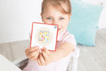 Das Spielbrett ist mit einem inneren und äußeren Bereich ausgestattet, sodass die Kinder ihre Muster- und Reihenfolgen-Aufgaben unabhängig und kreativ gestalten können. Dadurch wird das Verständnis für Logik und Struktur gefördert, während sich die Kinder auf spielerische Art und Weise mit Mathematik und Kunst beschäftigen.