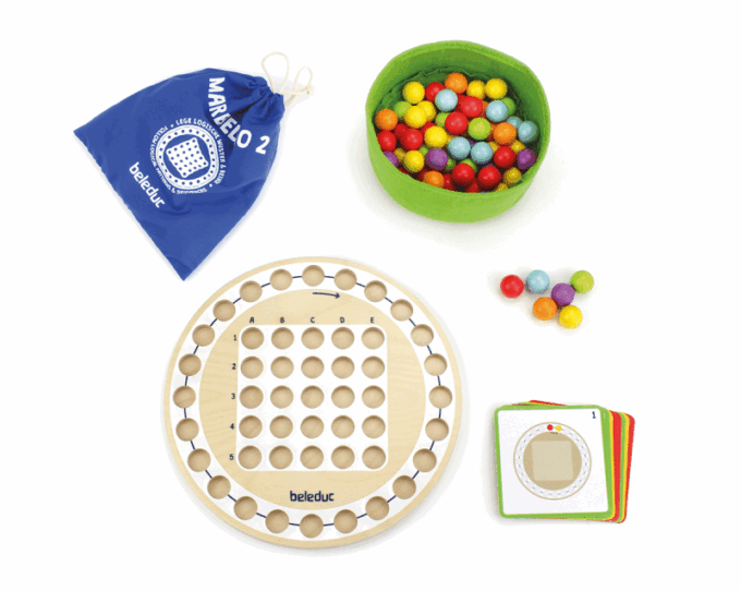 Mit 87 Teilen, darunter ein robustes Holzspielbrett und 64 bunte Holzkugeln, lädt Marbelino 2 dazu ein, spannende Muster zu legen. Die beiliegenden Aufgabenkarten bieten verschiedene Aufgaben in unterschiedlichen Schwierigkeitsstufen und sind eine perfekte Grundlage für herausforderndes Spielen. Um das Lernen noch flexibler zu gestalten, können die Karten auf der Rückseite selbstständig überprüft werden – ideal für eine Einzelbeschäftigung!