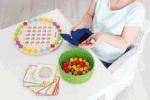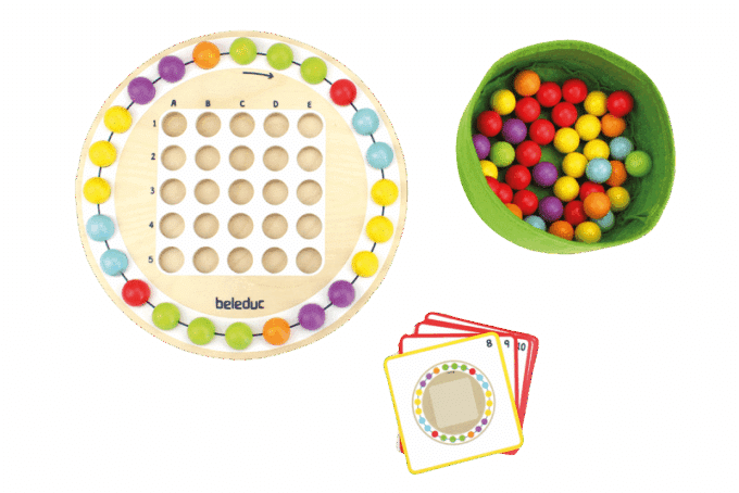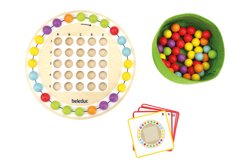 Das Spielbrett ist mit einem inneren und äußeren Bereich ausgestattet, sodass die Kinder ihre Muster- und Reihenfolgen-Aufgaben unabhängig und kreativ gestalten können. Dadurch wird das Verständnis für Logik und Struktur gefördert, während sich die Kinder auf spielerische Art und Weise mit Mathematik und Kunst beschäftigen.