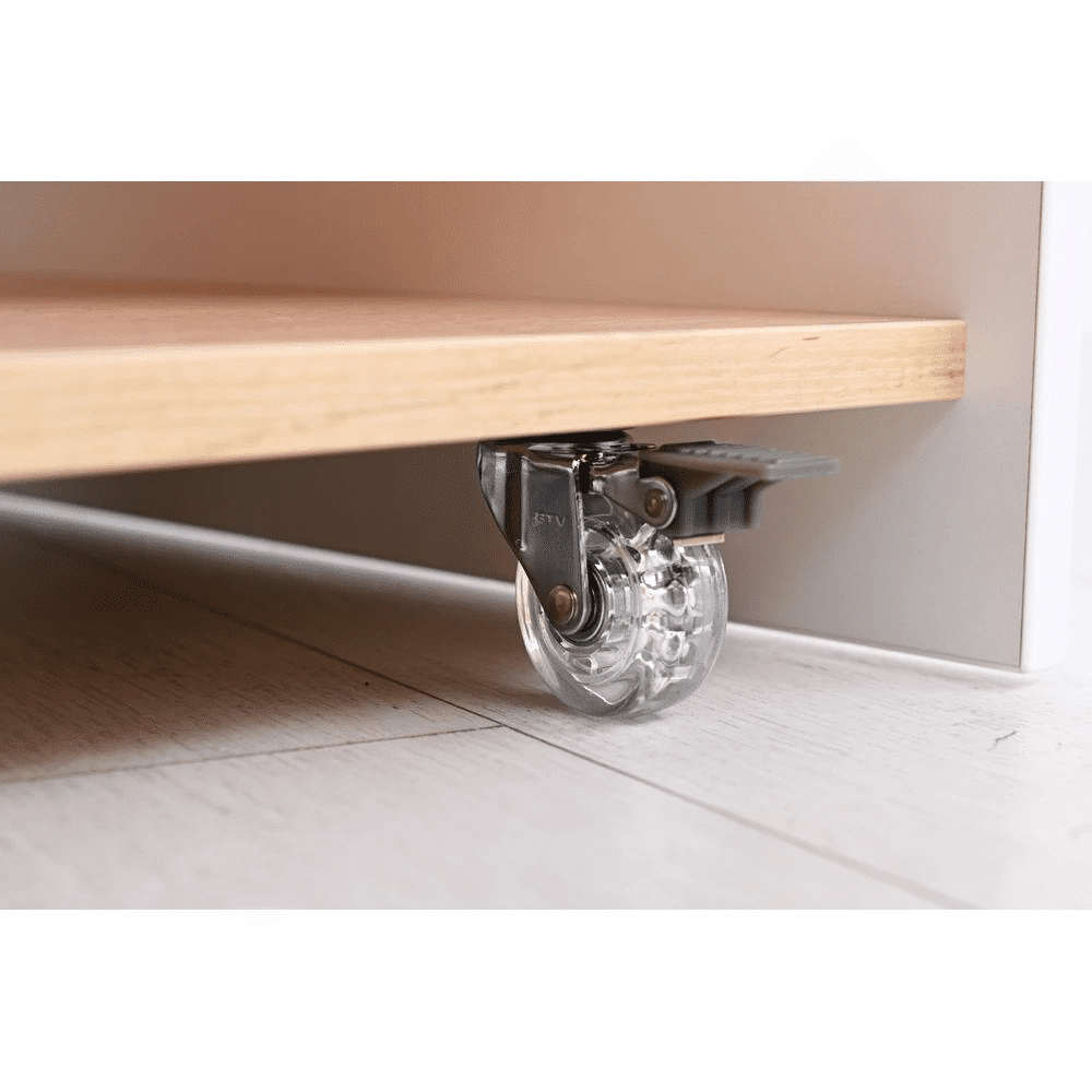 - Mobiles Design: Das Regal ist mit stabilen Rollen ausgestattet, von denen zwei feststellbar sind. Dadurch lässt sich das Regal mühelos von einem Raum in den anderen bewegen und sicher an Ort und Stelle fixieren. Flexibilität war noch nie so einfach!