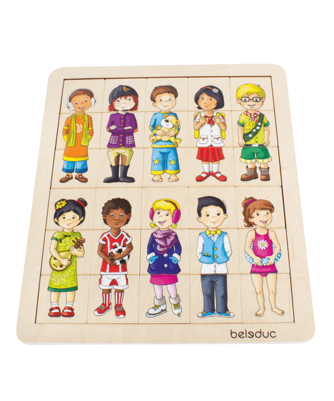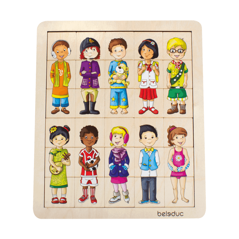 Mit Match & Mix „Kids“ kommen Puzzelspaß und Phantasie zusammen. Kinder können die Puzzleteile entsprechend der charakteristischen Merkmale der verschiedenen Figuren zusammensetzen, um bekannte Gesichter zu bilden. Oder sie lassen ihrer Kreativität freien Lauf und kreieren einzigartige Phantasiekinder durch das Mixen der Teile.