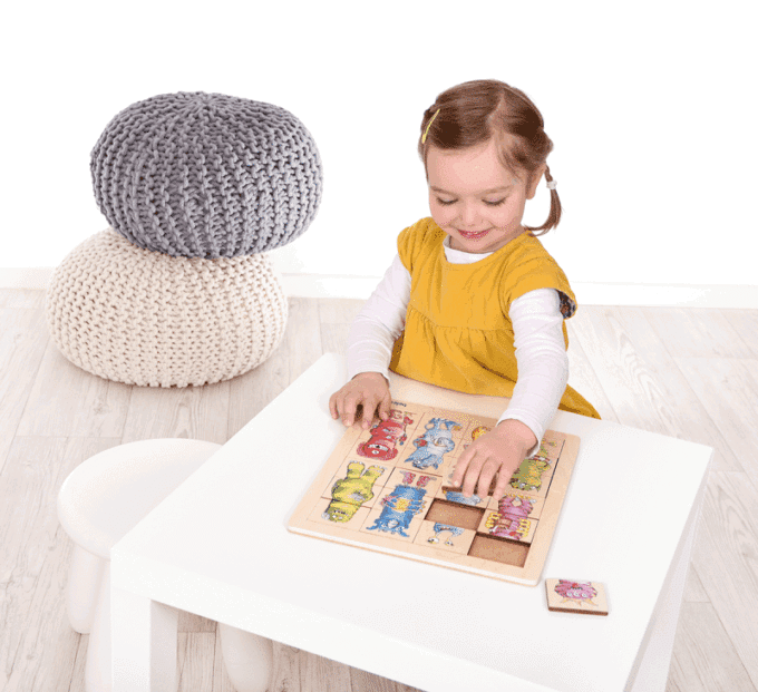 Willkommen im verrückten Reich der Match & Mix Monster, wo das kunterbunte Chaos regiert! Hier habt ihr die Freiheit, die Puzzlestücke zu farbenfrohen Monstern zu kombinieren – entweder passend nach Farben oder wild durcheinandergemixt für kreativen Puzzlespaß.