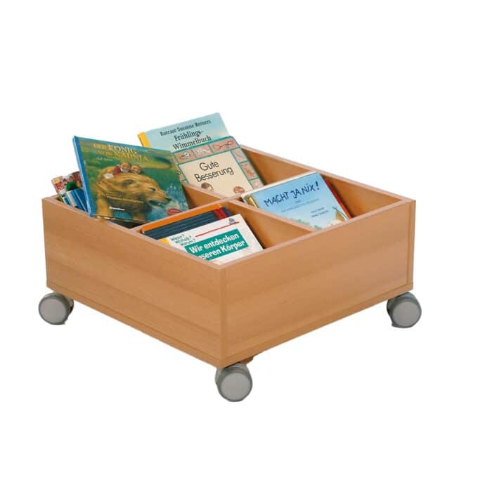 Bringen Sie Ordnung und Flexibilität in jede Spiel- und Leseecke! Unsere mobile Bücherkiste ist das multifunktionale Talent, das den Alltag in Kita, Schule und Kinderzimmer einfacher und bunter macht. Ob als mobile Bibliothek für die neuesten Lieblingsbücher, als rollender Speicher für Bausteine oder als flexibler Materialwagen für die Bastelecke – dieses kompakte Möbelstück ist immer genau dort, wo es gebraucht wird. Dank der praktischen 4-Fach-Einteilung und der leichtgängigen Rollen schafft es im Handumdrehen Ordnung und fördert gleichzeitig die Selbstständigkeit der Kinder.