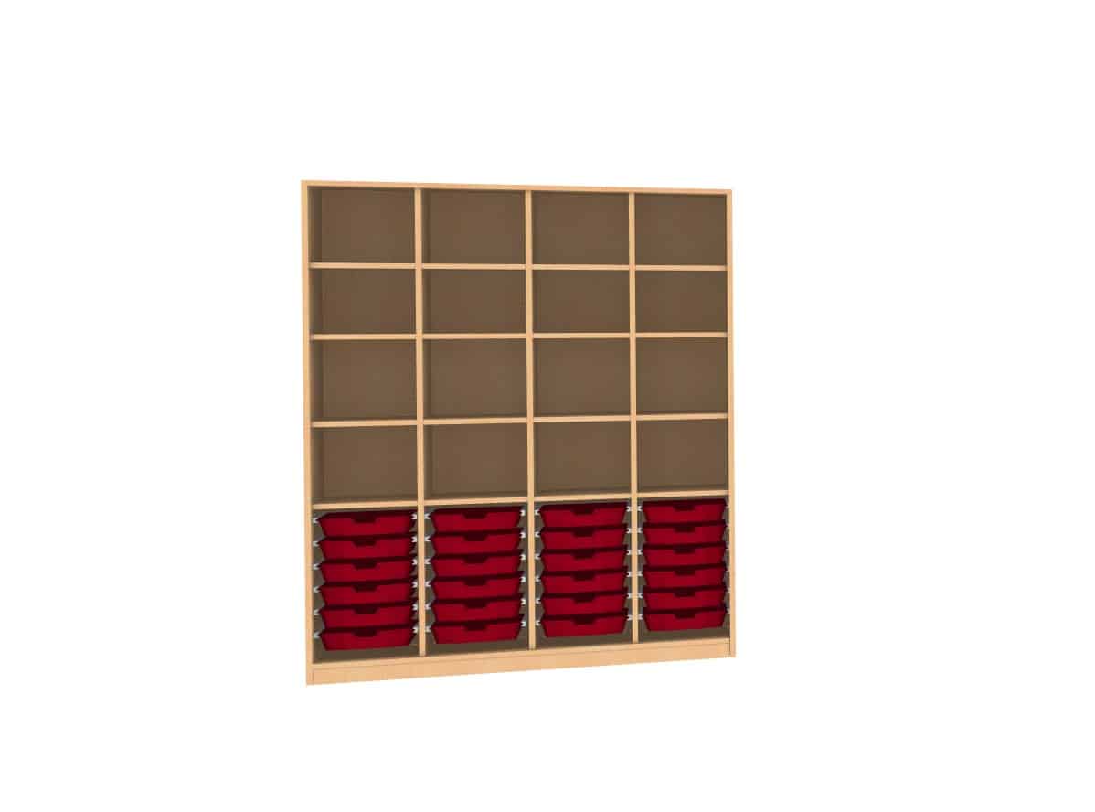 Materialschrank mit 3 Trennwänden, 4 feste Böden und 12 Einlegeböden für 24 CS1 Boxen