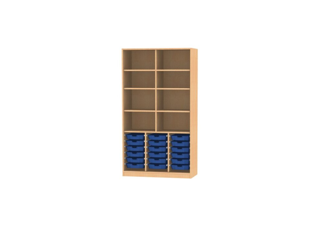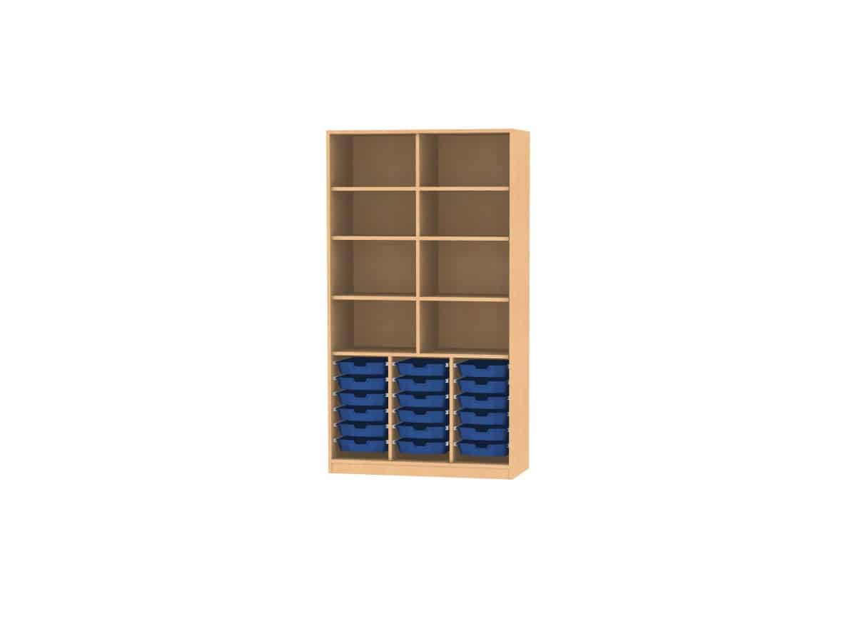 Produktdetails Materialschrank mit Mittelwand, 2 feste Böden und 6 Einlegeböden für 18 CS1 Boxen