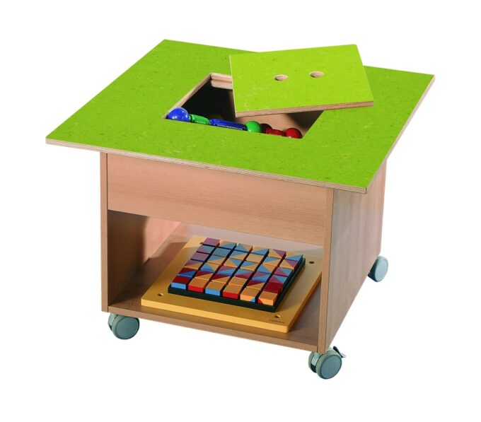 Materialspielwagen mit Linoleumoberfläche: Der mobile Spieltisch mit verborgenem Stauraum
