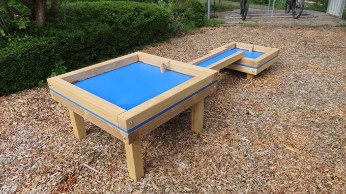 Ideale Kombination – Wenn Kinder zusammen an Matschtischen spielen, greifen sie instinktiv nach Materialien aus der Umwelt. Sie erfassen mit ihren Händen die vielfältigen Möglichkeiten, die Naturmaterialien wie Sand, Blätter, Zweige, Tannenzapfen, Kiesel oder Erde bieten, und entfalten ihre Fantasie ohne Einschränkungen. Die Matschtische sind in Kombination mit einer Wasserquelle ein wahres Paradies für kleine Bauherren. Unsere Matschtische aus robustem Robinienholz sind stabil, sicher im Stand und halten jeder Witterung stand. Sie lassen sich überall flexibel aufstellen und ihre Höhe wird individuell vor Ort justiert. Wir empfehlen sie für öffentliche Spielbereiche und für Kinder verschiedener Altersstufen.
