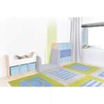 - Kunstlederbezug für einfache Reinigung Der Bezug der Matte ist aus pflegeleichtem Kunstleder gefertigt, das Schmutz und Feuchtigkeit abweist. Ein einfaches Abwischen genügt, um die Matte sauber zu halten – ideal für den intensiven Einsatz in Kindereinrichtungen.