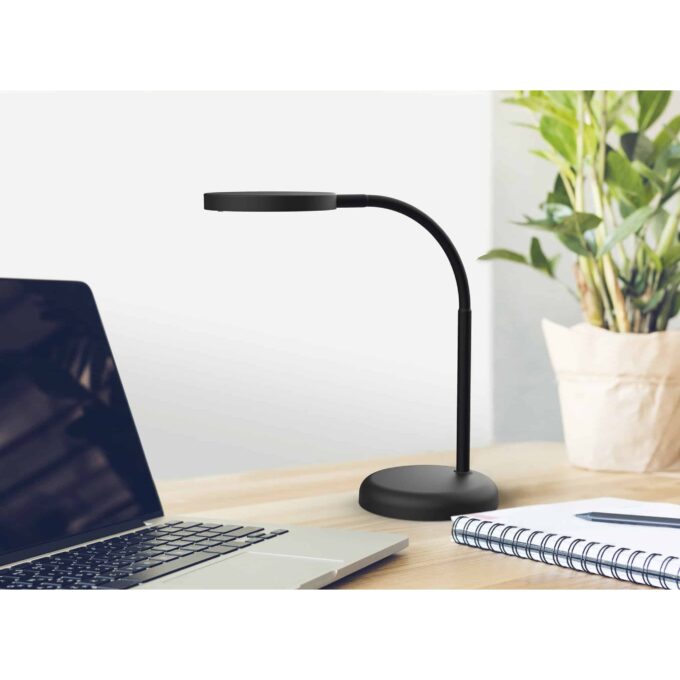 Ihr durchdachtes Design bietet eine flexible Handhabung mit einem beweglichen Arm und Kopf, der das Licht exakt ausrichtet. Die fest integrierte Beschwerungseinlage sorgt für einen sicheren und stabilen Stand. Die energieeffiziente LED-Technologie liefert eine hohe Lichtleistung und ist gleichzeitig umweltschonend sowie langlebig.