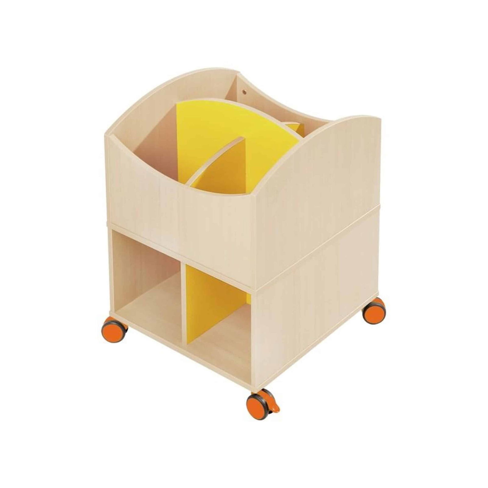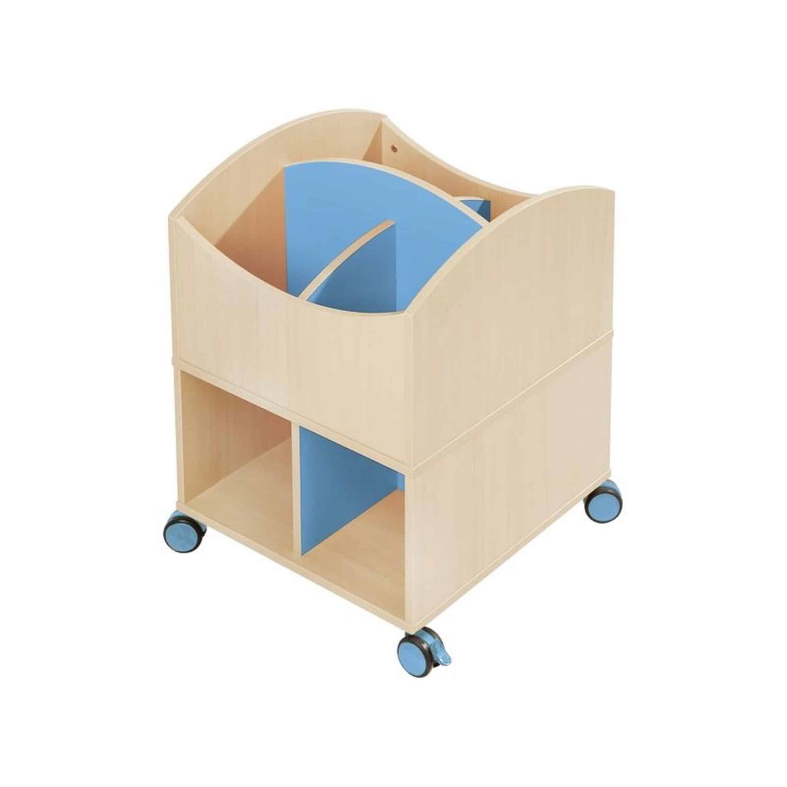 Der Maxi Bücherkasten besteht aus hochdichten Spanplatten und ist melaminbeschichtet, was ihn besonders robust und widerstandsfähig macht. Die stoßsicheren Kanten und das Design ohne scharfe Kanten garantieren höchste Sicherheit in Ihrem Kindergarten oder Ihrer Kita. Dank der praktischen Rollräder kann der Bücherkasten problemlos von Raum zu Raum bewegt werden, wodurch Sie flexibel bleiben und den Raum nach Bedarf anpassen können.