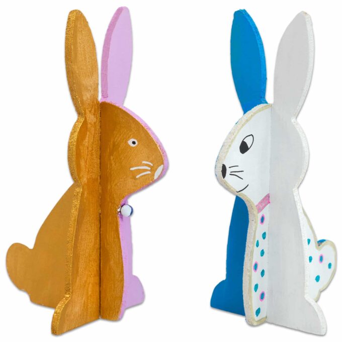 - Gefertigt aus stabilem MDF-Material, sind die Hasen robust und bleiben auch nach dem Bemalen und Zusammenstecken lange schön.