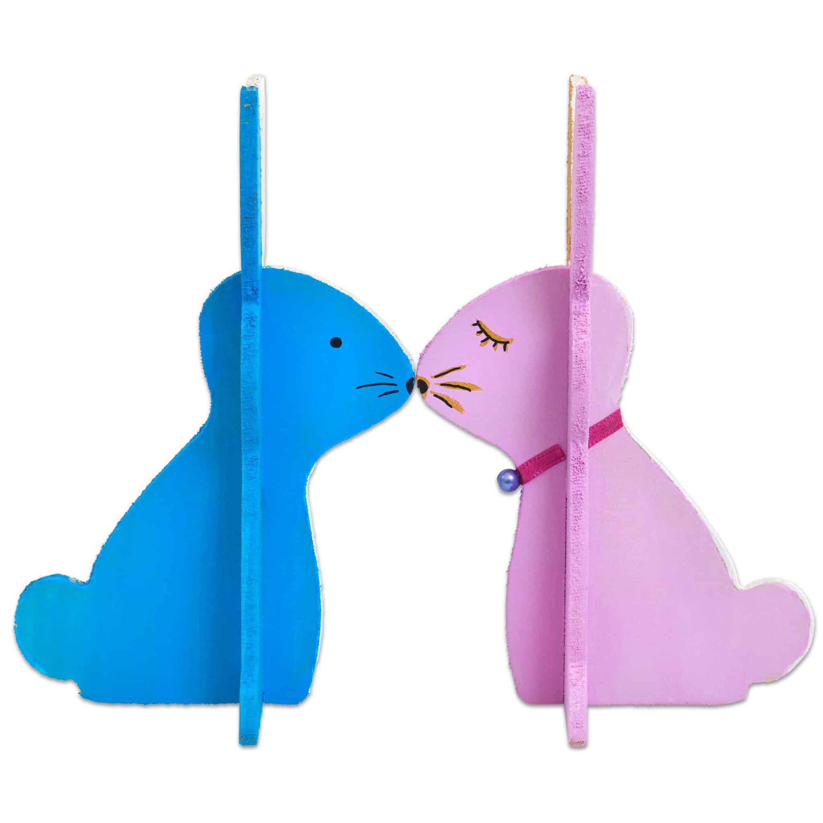 - Jede Hasenfigur besteht aus vorgefertigten Bauteilen, die sich mühelos zusammenstecken lassen – ganz ohne zusätzlichen Leim.