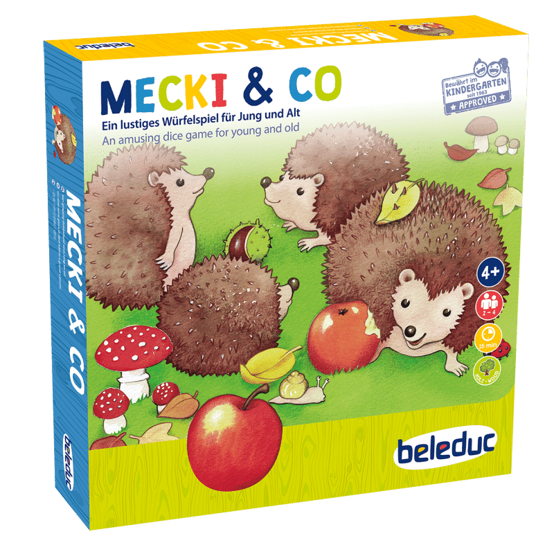 In Mecki & Co. nehmen die Spieler reihum den Würfel in die Hand und versuchen, ihre Igel mit 30 Stacheln möglichst schnell zu füllen. Je nach geworfener Augenzahl dürfen sie braune Stäbchen in die Löcher ihrer Igel stecken. Wer als Erster alle Stacheln hat, gewinnt das Spiel! Beide Würfelvarianten (3er oder 6er Würfel) sorgen dafür, dass das Spiel immer wieder neue Wendungen bietet und den Kindern ermöglicht, auf spielerische Art und Weise das Zählen zu üben.
