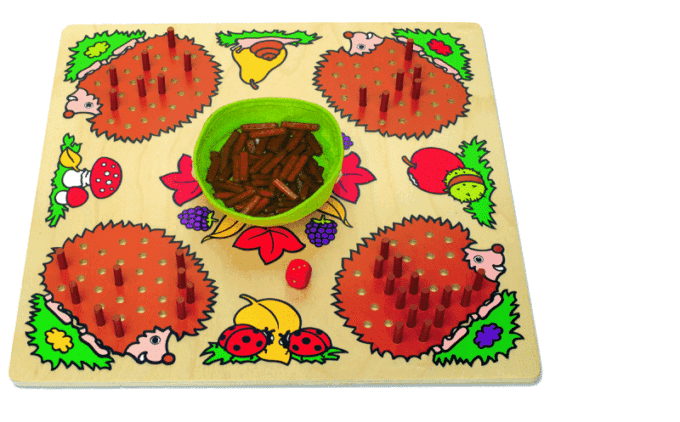 In Mecki & Co. nehmen die Spieler reihum den Würfel in die Hand und versuchen, ihre Igel mit 30 Stacheln möglichst schnell zu füllen. Je nach geworfener Augenzahl dürfen sie braune Stäbchen in die Löcher ihrer Igel stecken. Wer als Erster alle Stacheln hat, gewinnt das Spiel! Beide Würfelvarianten (3er oder 6er Würfel) sorgen dafür, dass das Spiel immer wieder neue Wendungen bietet und den Kindern ermöglicht, auf spielerische Art und Weise das Zählen zu üben.