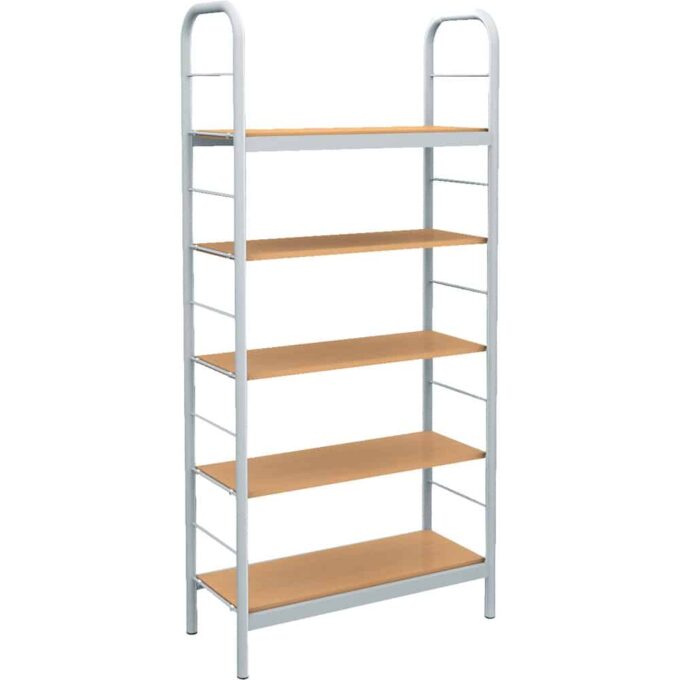 Schaffen Sie Ordnung und Flexibilität in Ihrer Einrichtung mit unserem verstärkten Mehrzweckregal Basismodul. Dieses robuste Bücherregal mit einem stabilen Metallrahmen (32 mm Rundrohr) wird durch fünf starke laminierte Böden in stilvoller Buche-Optik ergänzt. Die Böden werden einfach und sicher in den Metallrahmen eingehängt und bieten eine stabile Aufbewahrungslösung.