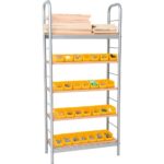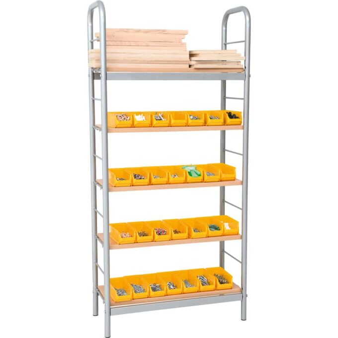 Dank seiner Abmessungen von 86,4 x 37,4 x 180 cm und einer Fachhöhe von ca. 30 cm eignet sich dieses Regal perfekt für die Aufbewahrung von Büchern, Materialien und Spielsachen in Kindergärten und Schulen. Wählen Sie zwischen zwei Bodenstärken (18 mm oder 25 mm), je nach Ihrem Bedarf an Tragfähigkeit (15 kg bzw. 40 kg pro Boden).