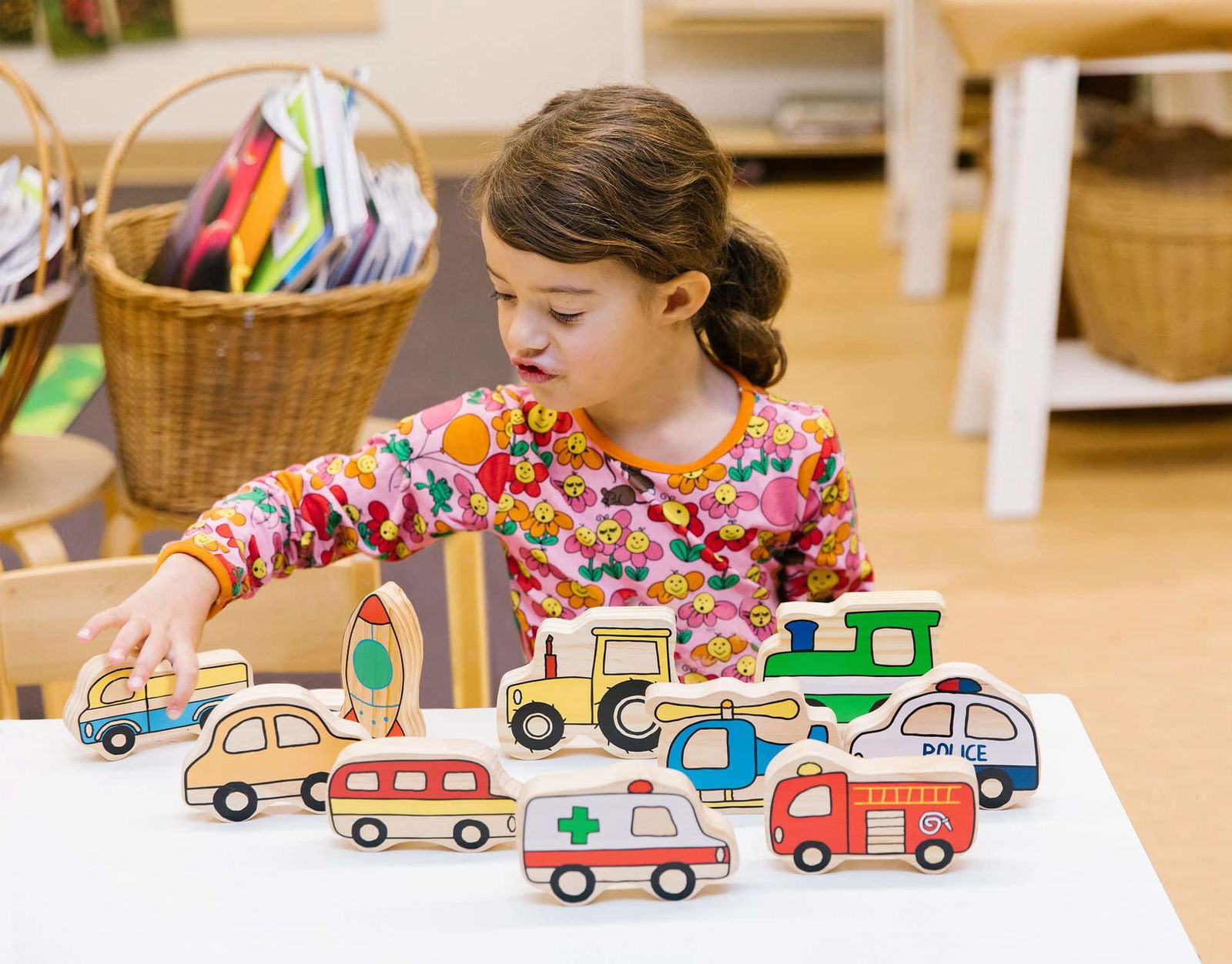 Diese wunderschön gestalteten und farbenfrohen Holzfahrzeuge sind eine großartige Ergänzung für jede Spielwelt oder Spiellandschaft. Das Set enthält 10 verschiedene Fahrzeuge, die in unserer Gemeinschaft häufig vorkommen. Die Fahrzeuge sind glatt und leicht, so dass sie von kleinen Händen leicht gegriffen werden können.