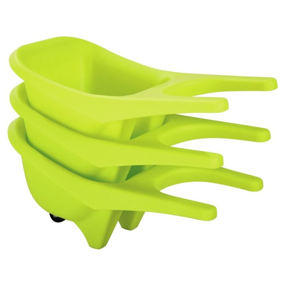- Besonderheit: Mehrere Schubkarren sind ineinander stapelbar