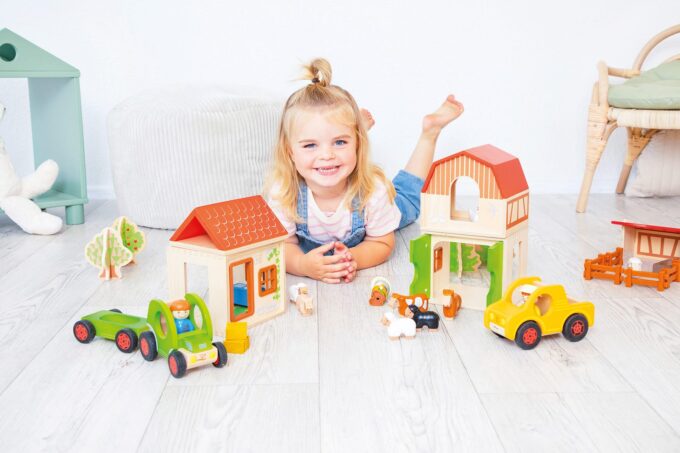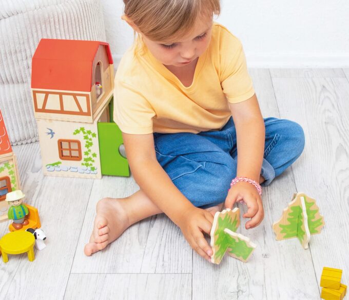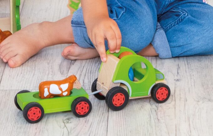 - Bühne frei für ländliche Szenen: Mit beweglichen Figuren und Fahrzeugen mit Rädern können Kinder das bäuerliche Leben spielerisch nachstellen.