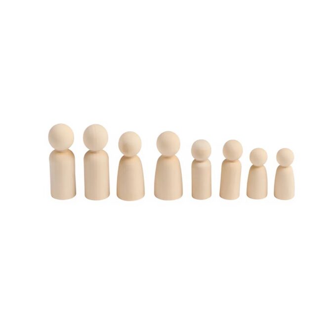 Erhältlich in verschiedenen Größen und Sets, bieten diese Holzfiguren die perfekte Basis für offenes, freies Spiel („Open-Ended Play“). Sie eignen sich hervorragend für den pädagogischen Einsatz in Kindergärten und Schulen, aber auch für das kreative Spiel zu Hause. Zudem sind sie ideal für Bastelprojekte: Mit etwas Farbe, Stoffresten oder Filzstiften können die Figuren individualisiert und zum Leben erweckt werden. Die warme Haptik des natürlichen Materials Holz sorgt dabei stets für ein angenehmes Greifgefühl und Langlebigkeit.