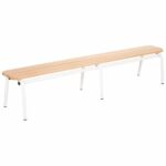 Sitzfläche aus massivem, lackierte Buchenholz, 20 mm dick, sehr robust. Formbeständiges Stahlgestell mit verstärkenden Querstreben unter der Sitzfläche.