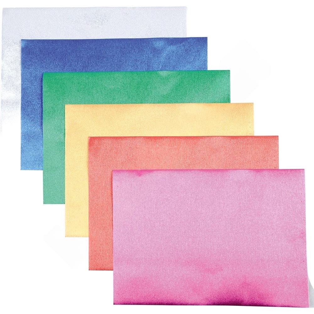 Verleihen Sie Ihren Bastelwerken einen Hauch von Eleganz mit unserem hochwertigen Metallic-Seidenpapier! Dieses Set enthält 6 Bogen in strahlenden Farben, die Ihr kreatives Herz höher schlagen lassen. Jedes Blatt hat die Maße von 25 x 35 cm und ein zartes Gewicht von 50 g/m², was es ideal für eine Vielzahl von Anwendungen macht – ob zum Verschenken, Dekorieren oder Basteln.