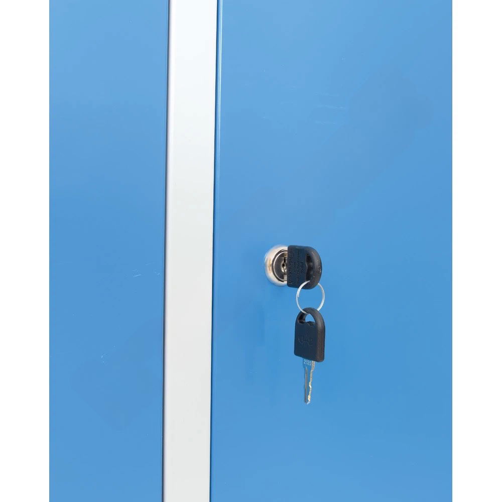 Jede Tür ist mit einem soliden Ein-Punkt-Zylinderschloss ausgestattet, das persönliche Dinge sicher verwahrt. Zum Lieferumfang gehören zwei Schlüssel pro Fach. Für die Verwaltung bietet der separat erhältliche Master-Schlüssel (Art.-Nr. 805142) eine wichtige Absicherung: Im Falle eines Schlüsselverlusts kann ein Fach ohne Beschädigung geöffnet werden. - Langlebigkeit durch robuste Materialien