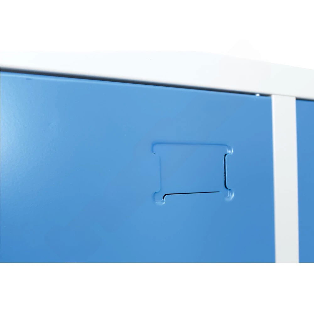 In die Türen eingearbeitete Lüftungsschlitze sorgen für eine kontinuierliche Luftzirkulation. Dies verhindert die Entstehung von unangenehmen Gerüchen und Feuchtigkeit im Schrankinneren. Die integrierten Namensschildhalter an jeder Tür ermöglichen eine klare Zuordnung und verhindern Verwechslungen im hektischen Alltag. - Stabilität und Flexibilität