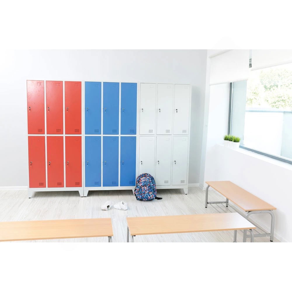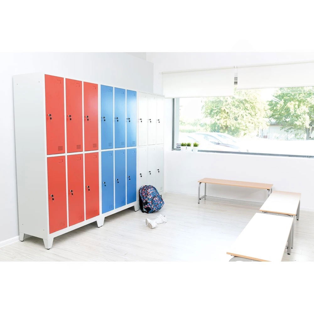 Dieser Schrank ist aus stabilem, pulverbeschichtetem Stahlblech gefertigt und hält den hohen Belastungen des täglichen Gebrauchs mühelos stand. Er ist die ideale Lösung für Unternehmen, Sportvereine oder Bildungseinrichtungen, die eine langlebige und funktionale Garderobenausstattung für ihr Team oder ihre Mitglieder suchen. Mit durchdachten Details wie Lüftungsschlitzen und sicheren Schlössern bietet dieser Spind alles, was man von einer modernen Aufbewahrungslösung erwartet.