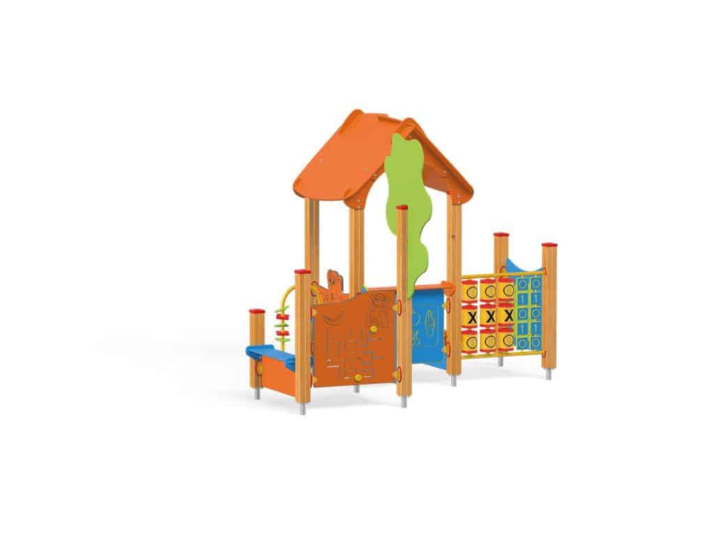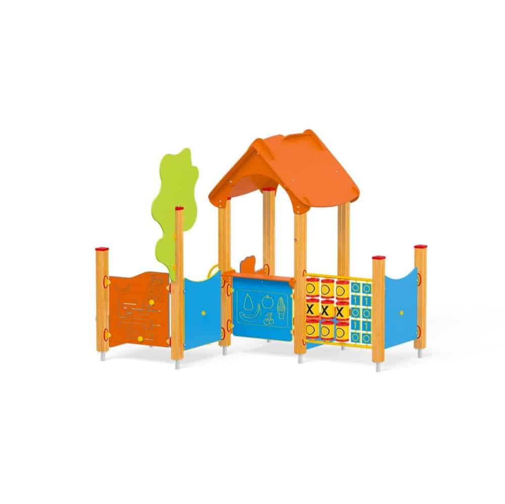 Haus für Kinder ist nicht nur ein Ort zum Ausruhen, wo Sie sich vor Regen oder Sonne verstecken können, sondern auch eine Zone des aktiven Spielens mit beweglichen Paneelen