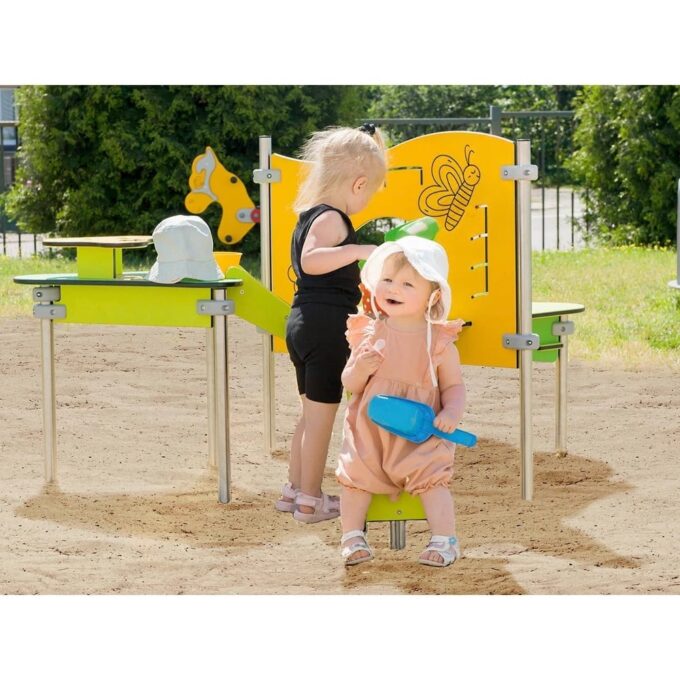 Willkommen in der bunten Welt der Milo Sandfabrik 1! Diese farbenfrohe und durchdachte Spieleinheit ist nicht nur ein Highlight auf jedem Spielplatz, sondern auch ein ausgezeichneter Ort für die Neugier und Kreativität Ihrer kleinen Entdecker im Alter von 1 bis 6 Jahren. Mit ihrer inspirierenden Gestaltung in frischem Grün und sonnigem Gelb lädt die Sandfabrik die Jüngsten dazu ein, ihrer Fantasie freien Lauf zu lassen.