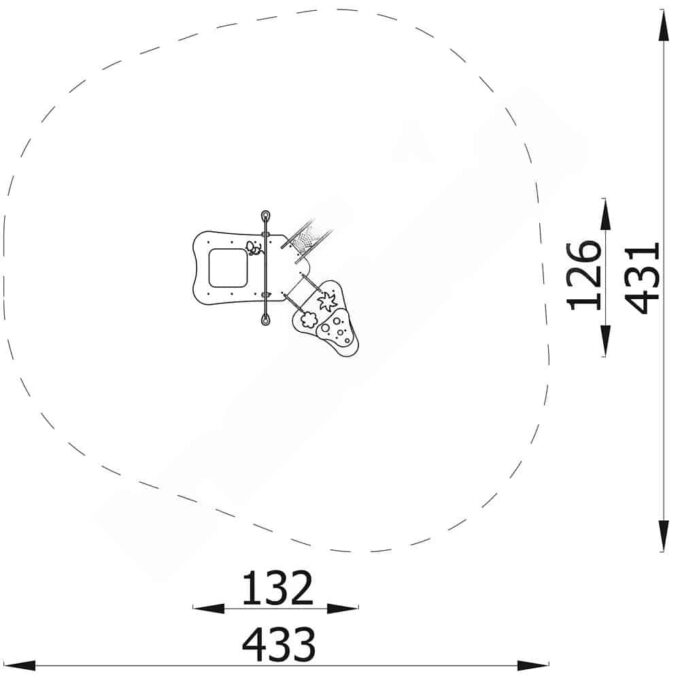 - Sicherheitsbereich: 433 x 431 cm (Fläche: 14,9 m²)