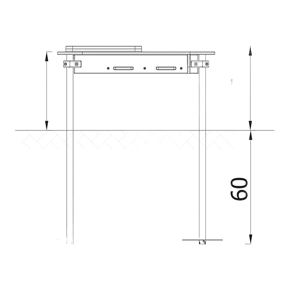 - Edelstahlrundpfosten (Ø 34 mm), die direkt im Boden verankert und extrem korrosionsbeständig sind.