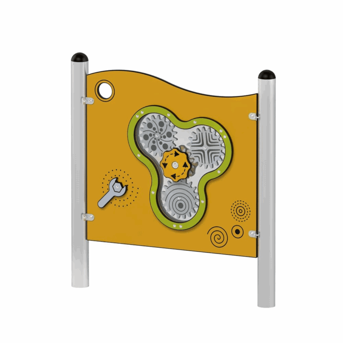 Die Spielwand Zahnräder ist die perfekte Kombination aus Spiel und Lernen. Ob drehende Zahnräder oder der schwenkbare Schraubenschlüssel – hier sind die kleinen Technikfans in ihrem Element. Durch das Experimentieren mit den Zahnrädern lernen die Kinder auf spielerische Weise die Grundlagen der Bewegungsübertragung kennen und erleben faszinierende optische Effekte. Diese interaktiven Elemente fördern nicht nur die Feinmotorik, sondern schulen auch die Wahrnehmung und das logische Denken.