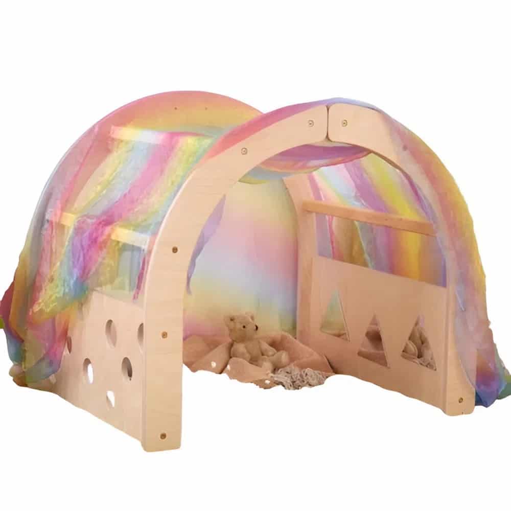 Der Bogen ist die ideale Basis für eine Sinneshöhle. Gestalten Sie einen gemütlichen, sensorischen Raum, der junge Kinder dazu anregt, sich auf achtsames Spiel einzulassen. Mit Decken, Kissen und verschiedenen Materialien ausgestattet, wird der Bogen zu einem Ort, an dem Kinder tasten, fühlen und entdecken können, was ihre sensorische Entwicklung auf spielerische Weise fördert. - Vollständig individualisierbar für maximale Kreativität