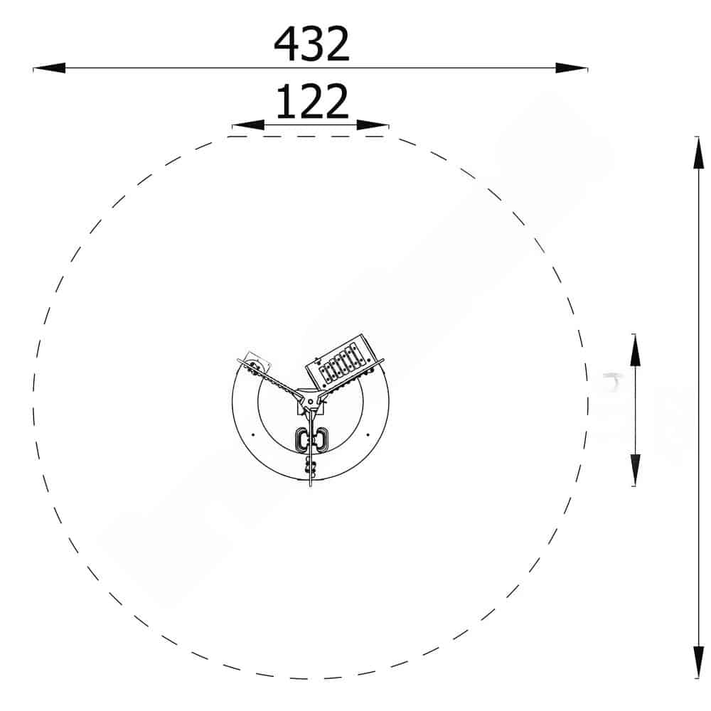 - Sicherheitsbereich: 432 x 403 cm (Fläche: 14,6 m²)