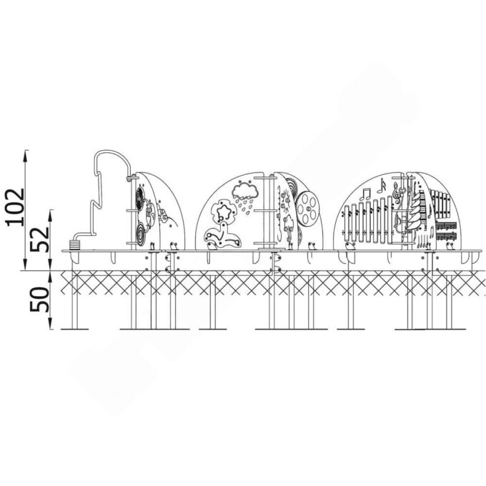 Die Mini-Insel Trio besteht aus einer stabilen Grundkonstruktion aus verzinktem und pulverbeschichtetem Stahlrohr, die garantiert witterungsbeständig ist. Die Wände und Sitzflächen sind aus widerstandsfähiger HDPE-Platte gefertigt, die UV-beständig und langlebig ist. So hält die Mini-Insel jeder Witterung stand und bleibt über viele Jahre hinweg ein beliebter Spielort.