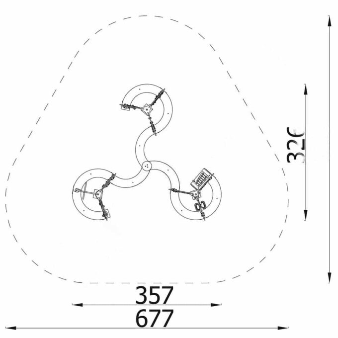 - Sicherheitsbereich: 677 x 640 cm (Fläche: 32,5 m²)