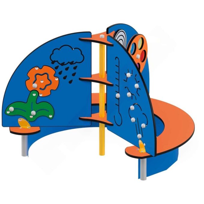 Die Mini-Insel Wetterstation setzt auf fröhliche Farben und bewegliche Elemente, die dazu einladen, die Welt um sich herum spielerisch zu erkunden. Die Insel besteht aus mehreren miteinander verbundenen Spielwänden, die eine Vielzahl von Aktivitäten ermöglichen, während die integrierte Sitzbank zugleich als Balanciersteg dient. Hier können die Kinder nicht nur ihre motorischen Fähigkeiten entwickeln, sondern auch ihre Balance und Koordination trainieren – alles während sie zusammen mit Freunden spielen.