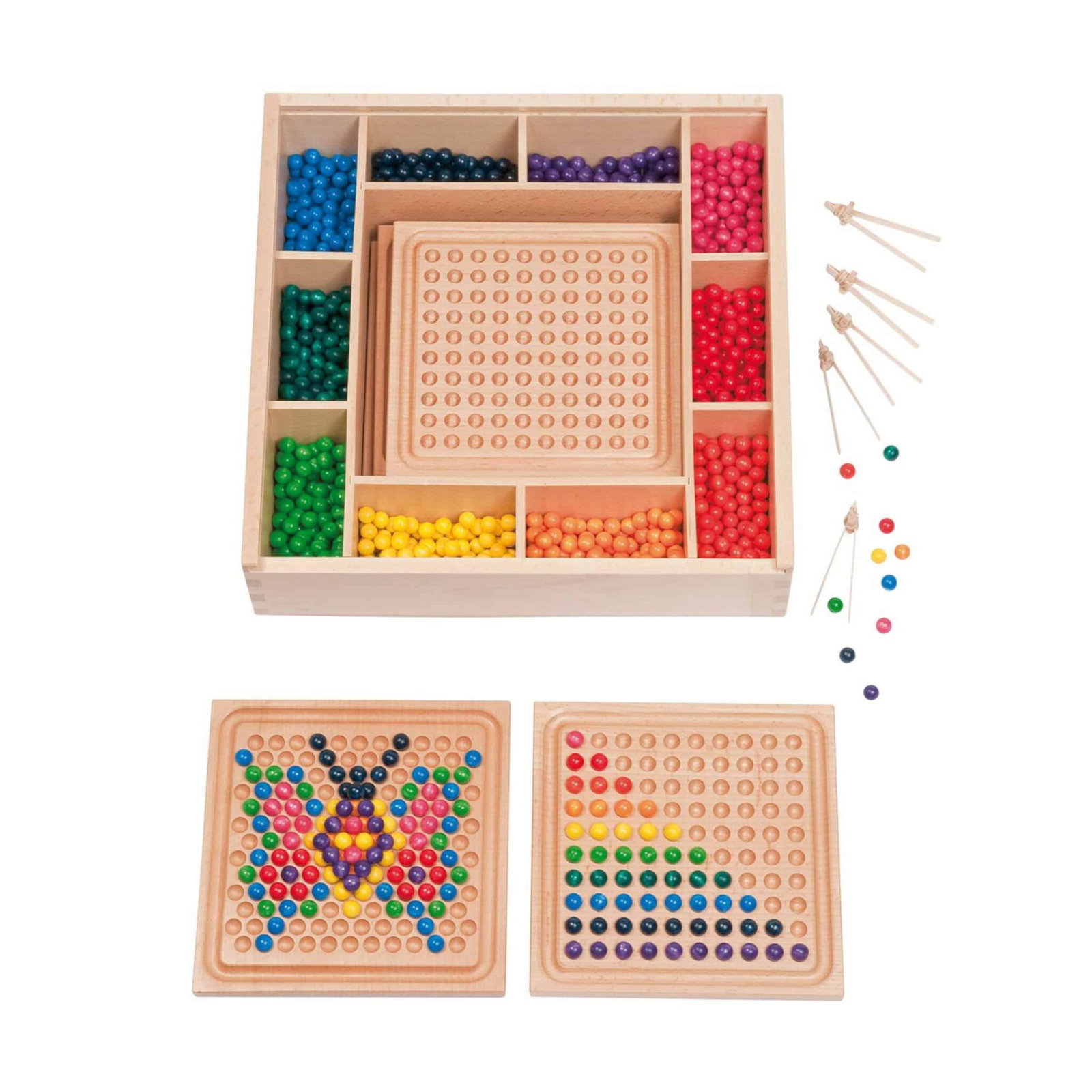 - Kindergerechte Größe: Die Holzkugeln mit einem Durchmesser von 1 cm sowie die handlichen Tabletts machen das Spiel gut greifbar und haptisch angenehm.