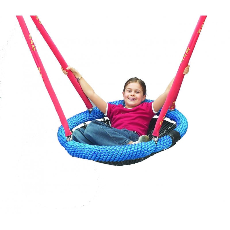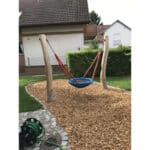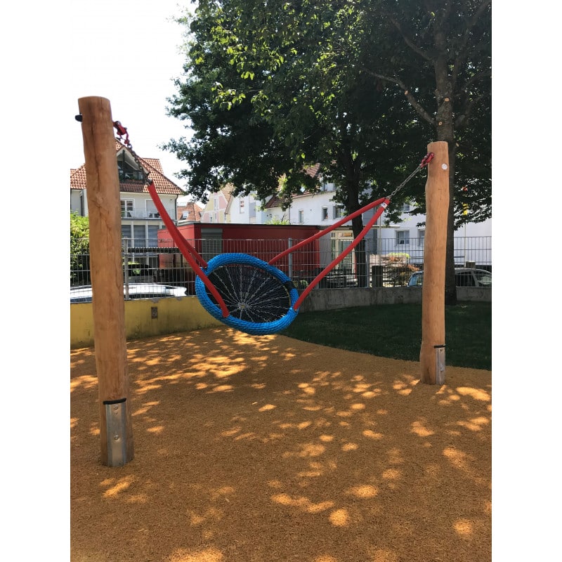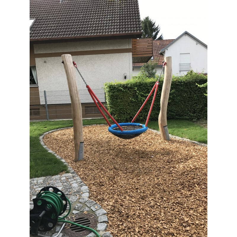 - 1 Mini-Vogelnest-Sitz Ø 90cm, mit Ketten und Schlauchüberzug, fertig vorbereitet zur Befestigung an den Standpfosten
