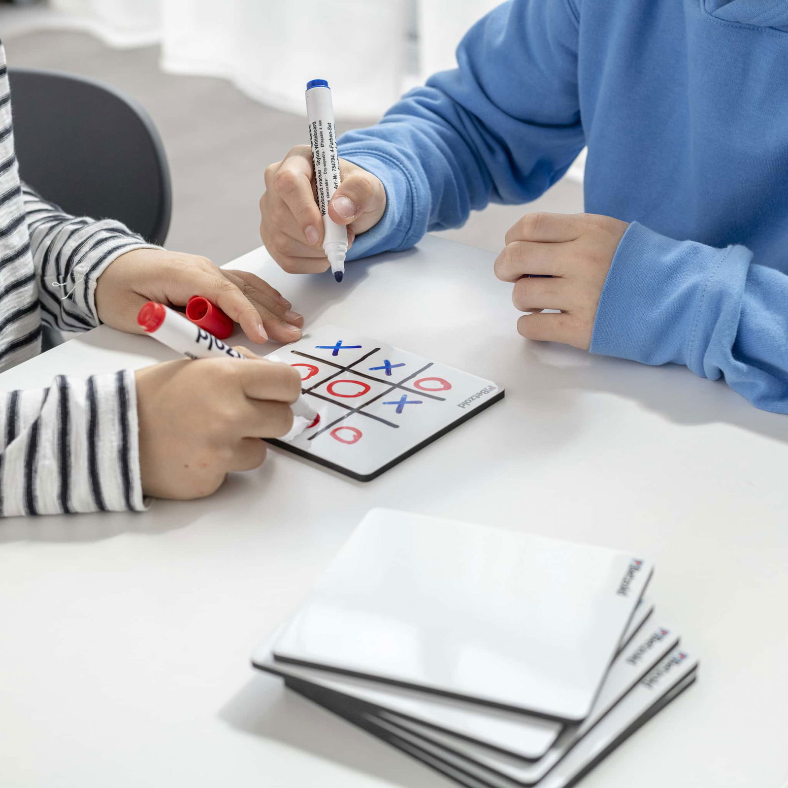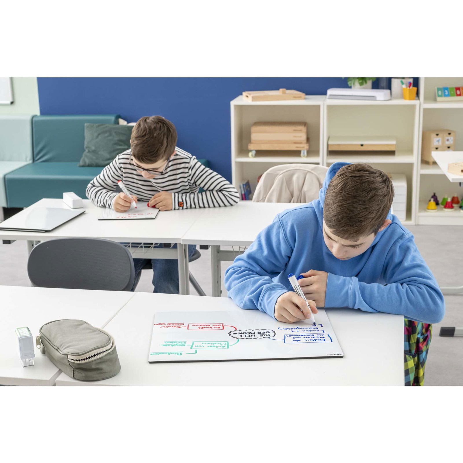 Die Whiteboards in verschiedenen Größen sind der perfekte Partner für jede Unterrichtsstunde! Sie animieren zur Mitarbeit und lassen sich problemlos bei jedem Thema einsetzen. Die weiße Vorderseite ist magnethaftend und mit Whiteboardstiften beschreibbar, während die schwarze Rückseite aus stabilem Schaumstoff besteht. So können Sie ganz einfach Fragen stellen oder kleine Aufgaben geben, die die Schüler dann durch Hochhalten ihrer Tafeln beantworten. Diese Möglichkeit fördert die aktive Teilnahme und das Verständnis, da die Kinder visuell und konkret am Lernen beteiligt werden.