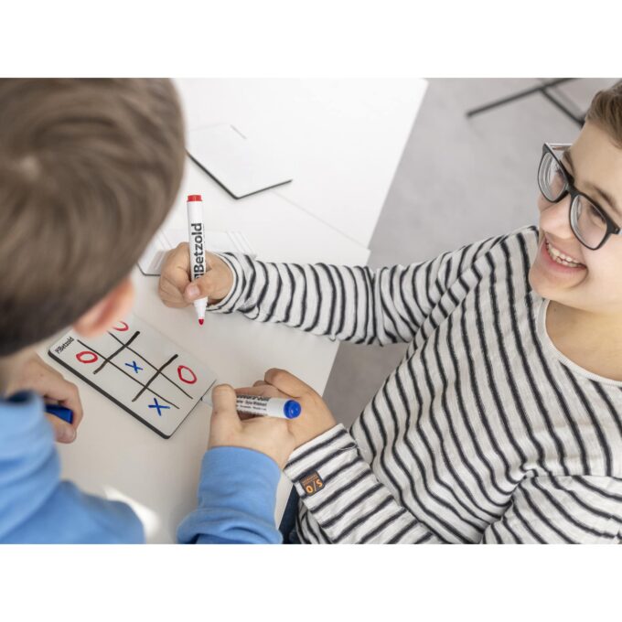 Die Whiteboards in verschiedenen Größen sind der perfekte Partner für jede Unterrichtsstunde! Sie animieren zur Mitarbeit und lassen sich problemlos bei jedem Thema einsetzen. Die weiße Vorderseite ist magnethaftend und mit Whiteboardstiften beschreibbar, während die schwarze Rückseite aus stabilem Schaumstoff besteht. So können Sie ganz einfach Fragen stellen oder kleine Aufgaben geben, die die Schüler dann durch Hochhalten ihrer Tafeln beantworten. Diese Möglichkeit fördert die aktive Teilnahme und das Verständnis, da die Kinder visuell und konkret am Lernen beteiligt werden.