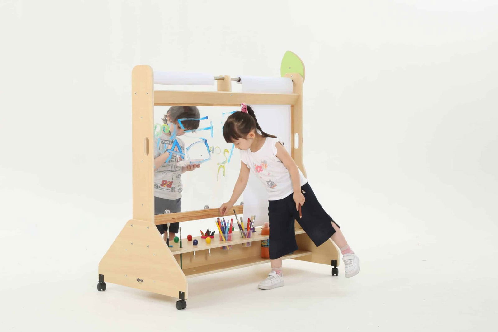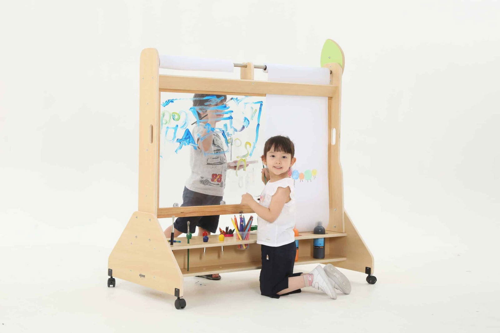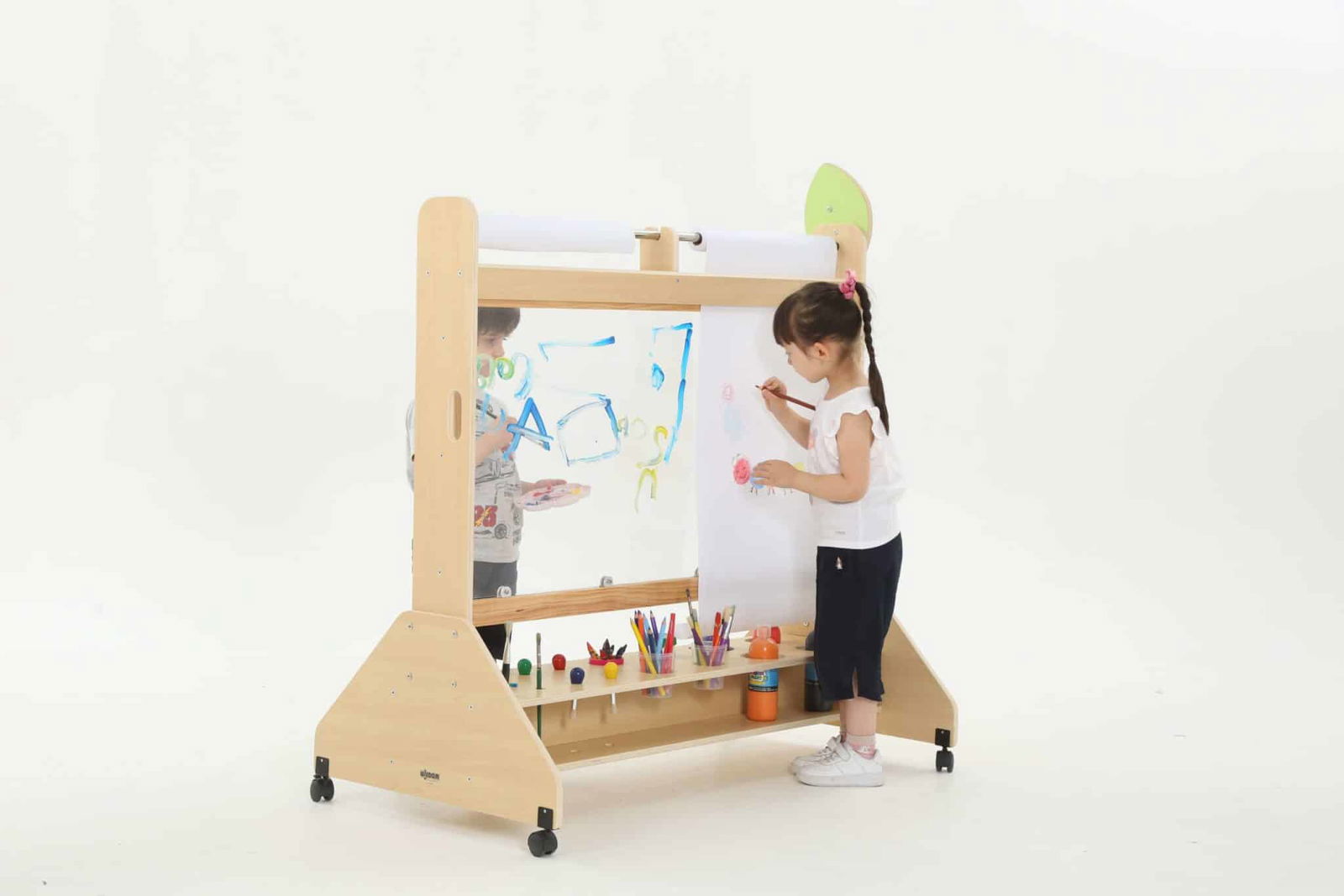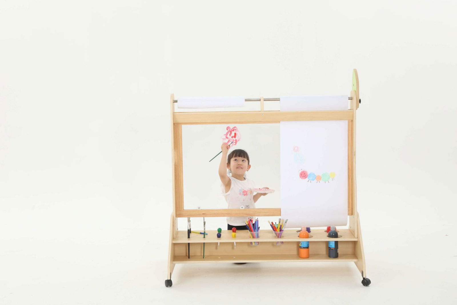 Die Mobile Maltafel ist nicht nur eine Tafel, sondern auch ein kreativer Raum, in dem Kinder mit verschiedenen Maltechniken experimentieren können. Sie ist kompatibel mit Papierrollen von 50 cm x 25 m, sodass die Kinder mühelos neue Kunstwerke schaffen können, ohne dass der Spaß je endet. Die transparente Fläche ermöglicht zudem ein aufregendes Spielen mit verschiedenen Farben und Materialien, was die Kreativität weiter anregt.