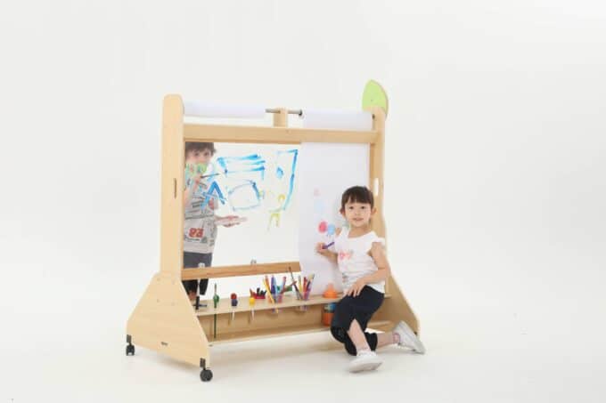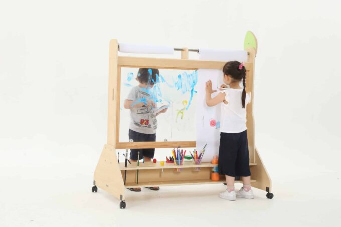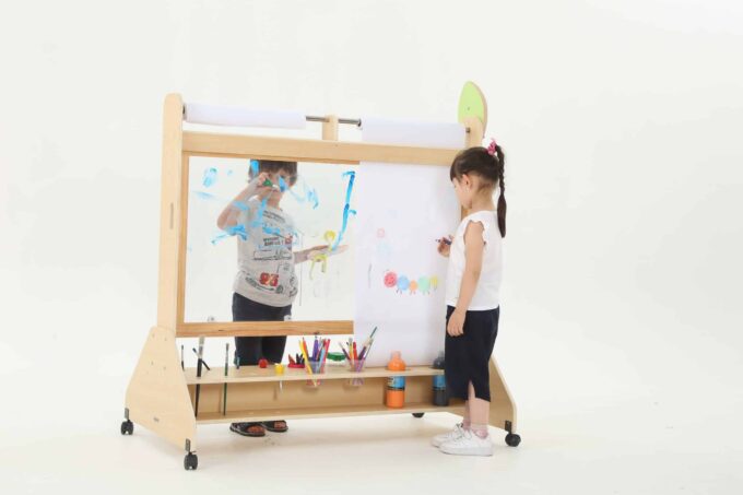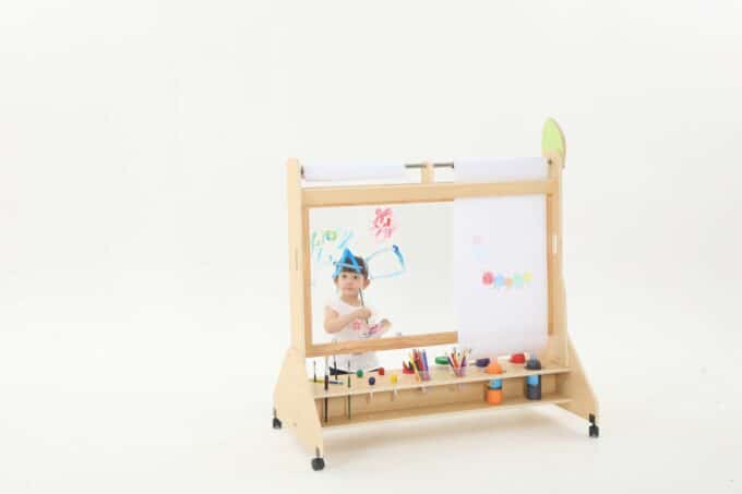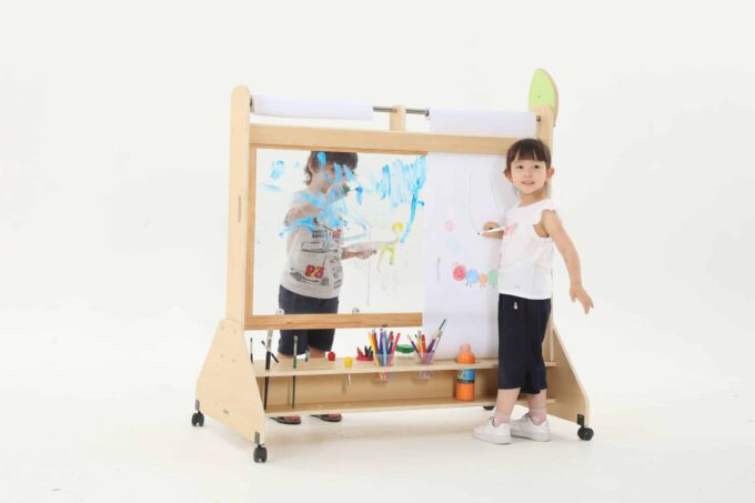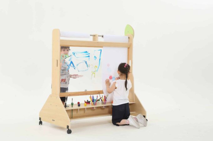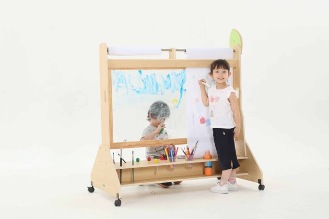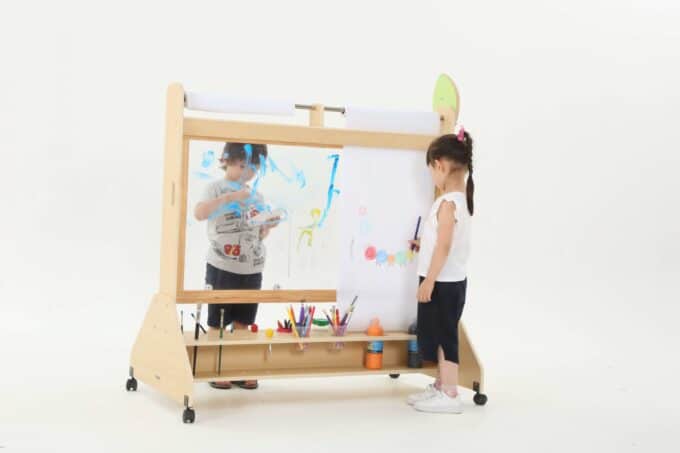 Die Mobile Maltafel ist nicht nur eine Tafel, sondern auch ein kreativer Raum, in dem Kinder mit verschiedenen Maltechniken experimentieren können. Sie ist kompatibel mit Papierrollen von 50 cm x 25 m, sodass die Kinder mühelos neue Kunstwerke schaffen können, ohne dass der Spaß je endet. Die transparente Fläche ermöglicht zudem ein aufregendes Spielen mit verschiedenen Farben und Materialien, was die Kreativität weiter anregt.