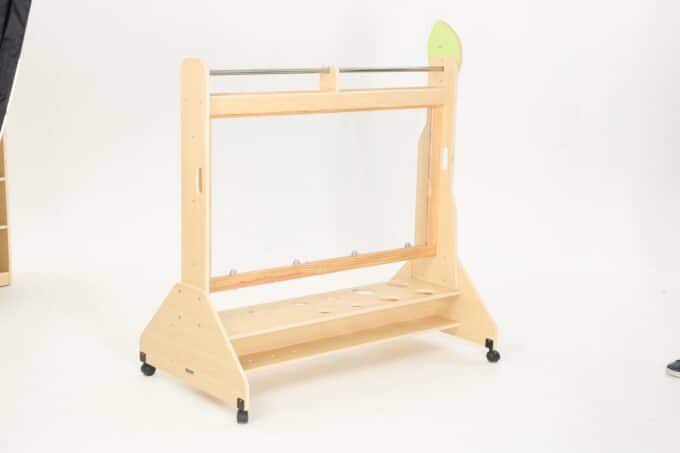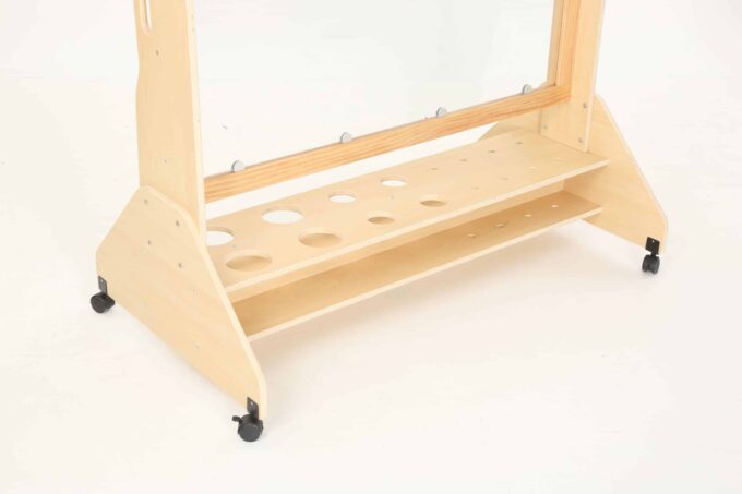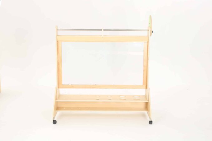 Hergestellt aus Pappel-Multiplex mit Melaminbeschichtung, Polycarbonat, Kunststoff und Stahl, garantiert unsere Mobile Maltafel nicht nur Stabilität, sondern auch eine lange Lebensdauer im täglichen Gebrauch. Die Materialien sind so ausgewählt, dass sie den Herausforderungen des Spielalltags standhalten und gleichzeitig eine sichere Umgebung für das künstlerische Schaffen bieten.