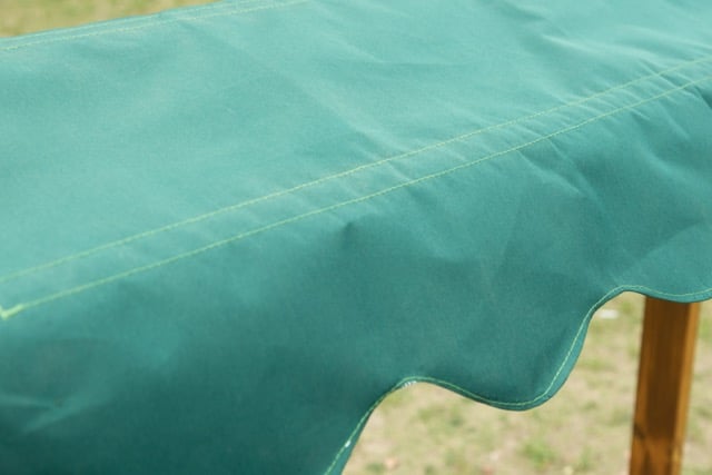 - Wetterfeste Markise aus strapazierfähigem Stoff schützt Kleidung und Schuhe vor Sonne und Regen.